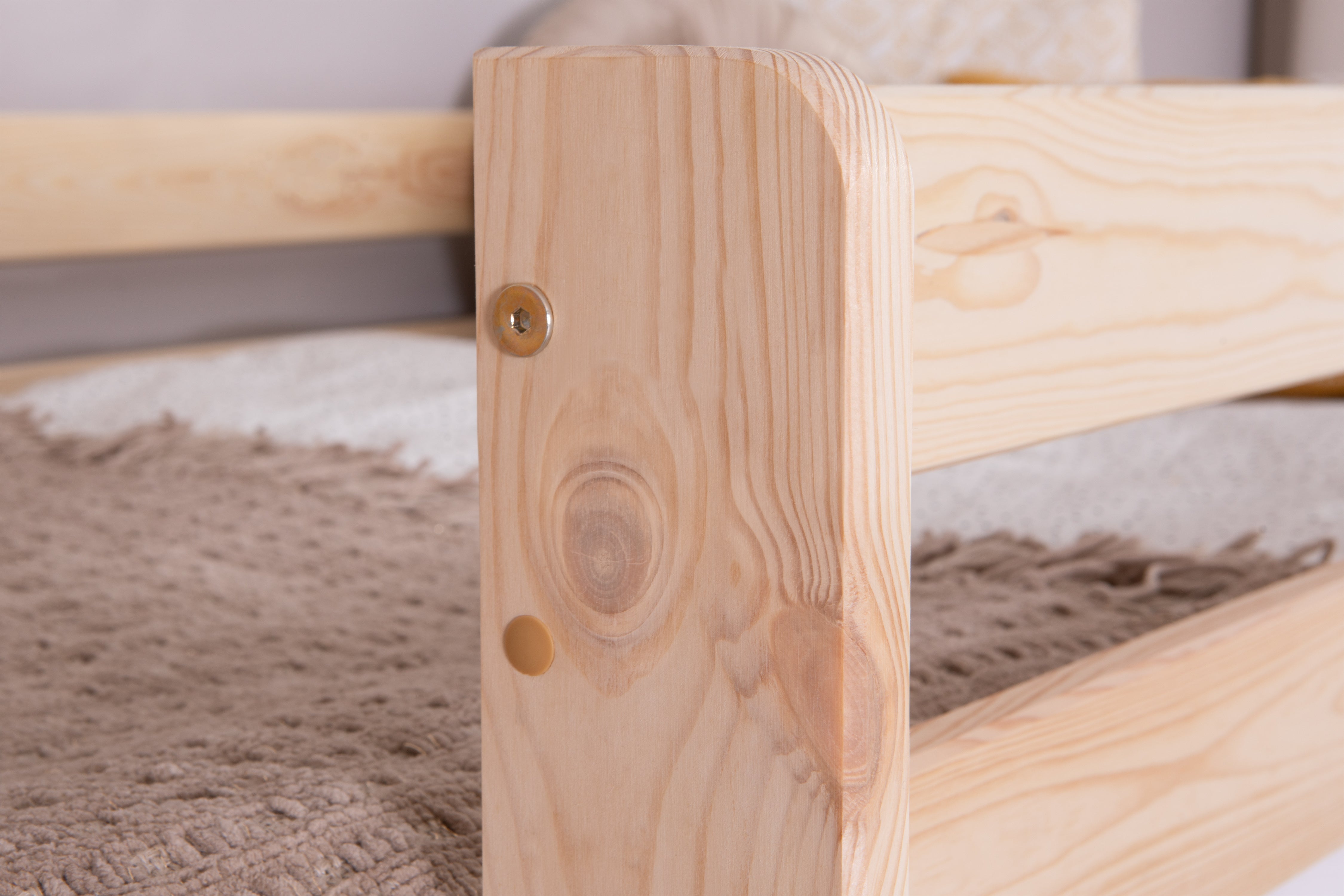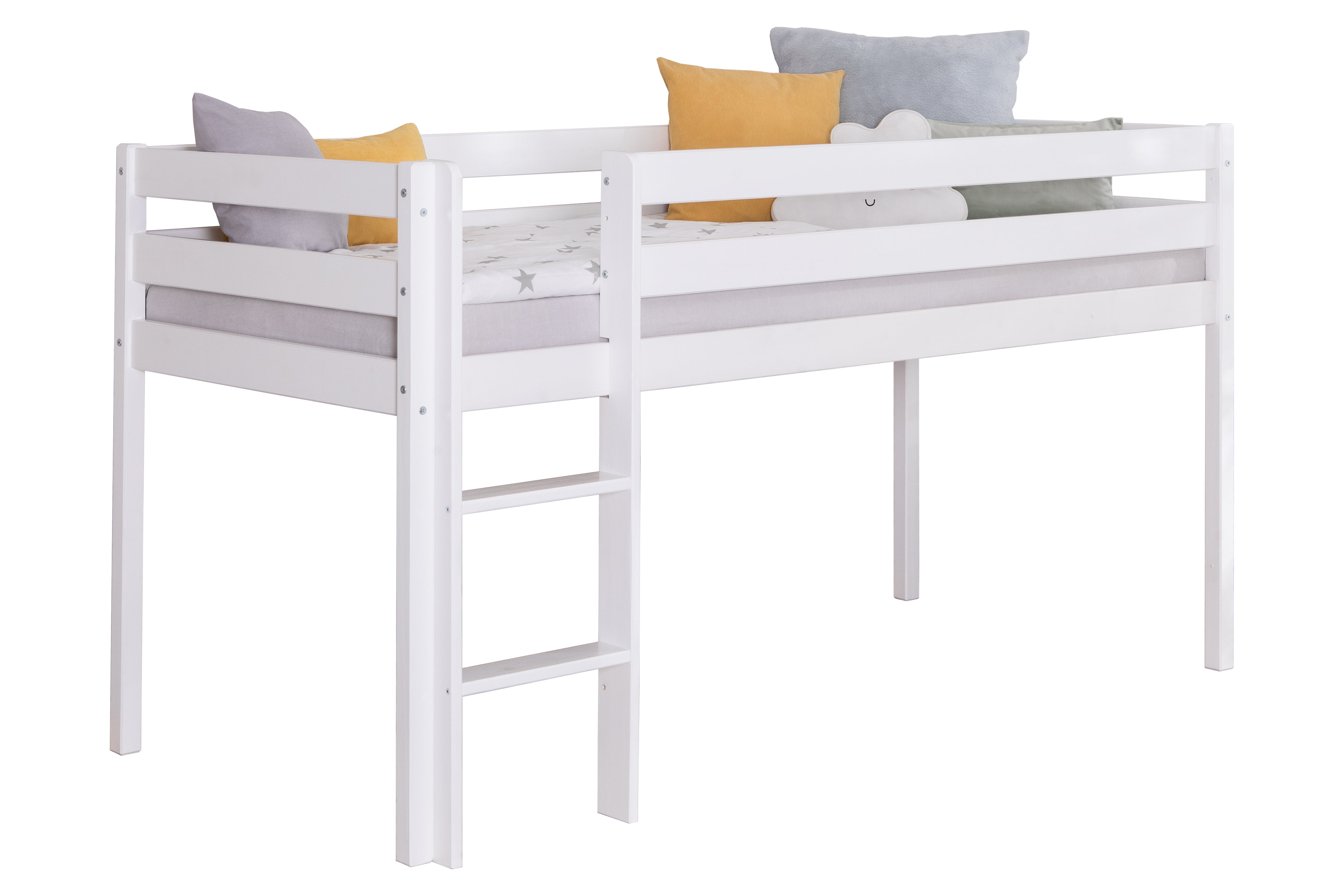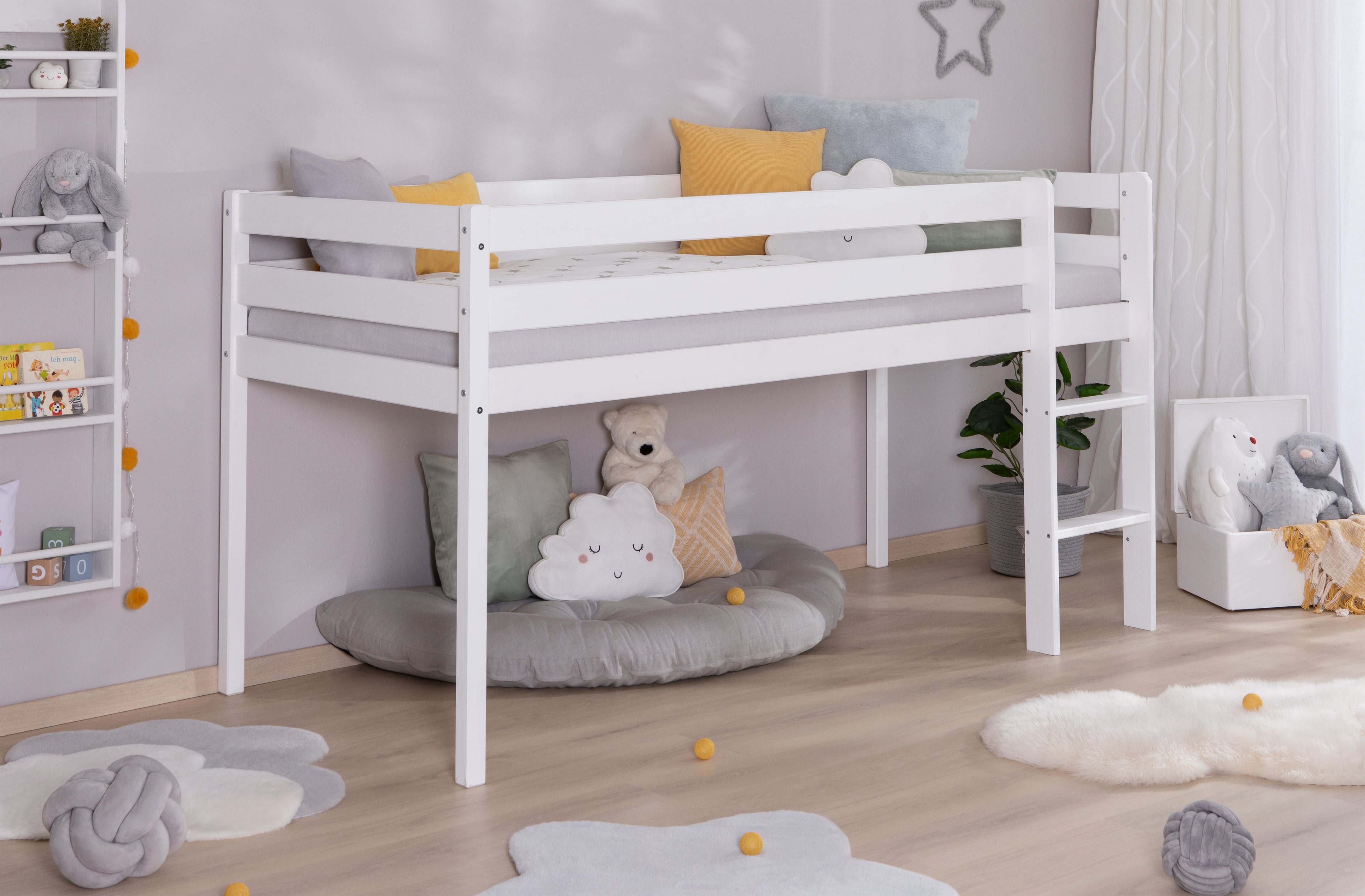 Das Hochbett Malte in 90x200 cm aus massivem Kiefernholz ist seit Jahren ein Liebling in vielen Kinderzimmern – vielleicht auch bald bei euch! Mit seiner kompakten Bauweise und der niedrigen Höhe von nur 114 cm sparst du Platz und schaffst gleichzeitig ein kleines Schlafparadies. Zusätzlich geben dir die abgerundeten Kanten ein sicheres Gefühl, während dein Kind schläft oder spielt. Besonders praktisch: Du kannst die Leiter links oder rechts montieren, je nachdem, wie es am besten in dein Kinderzimmer passt.