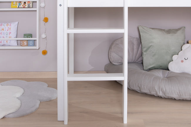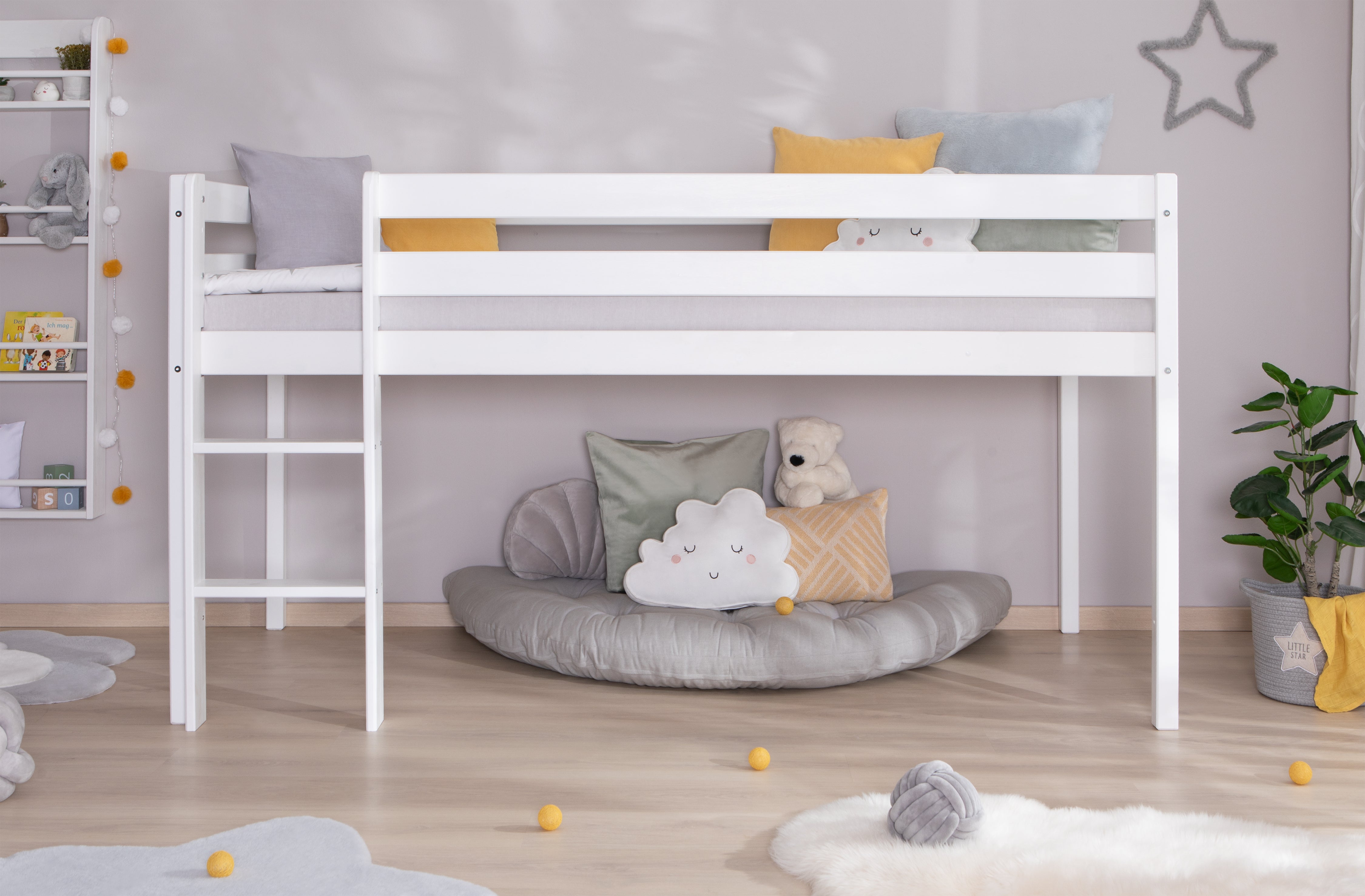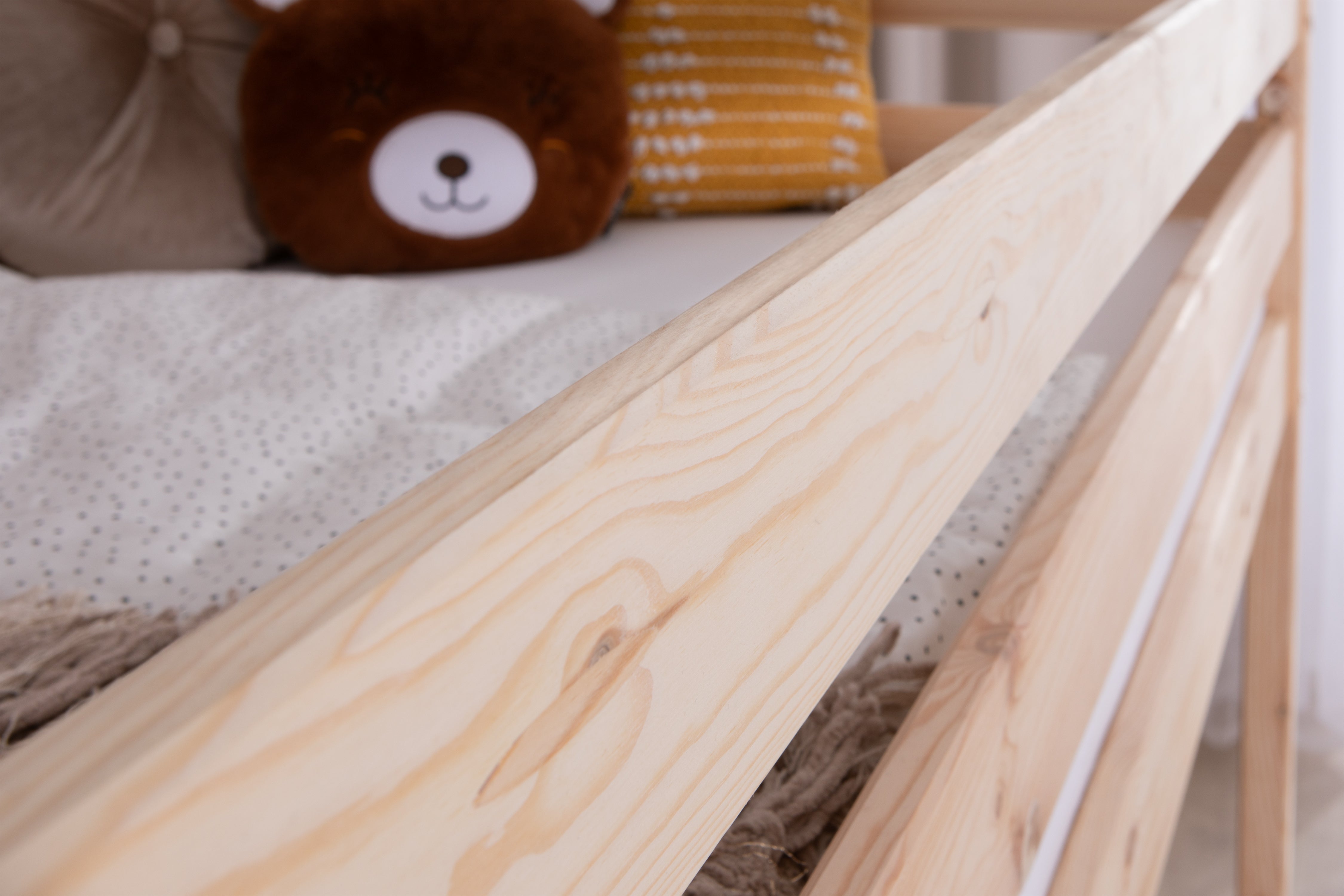 Wenn du möchtest, kannst du Malte mit liebevoll gestalteten Vorhangstoffen ergänzen – perfekt zum Spielen am Tag und zum Kuscheln am Abend. So kann das Hochbett Malte schnell zum Lieblingsmöbelstück werden und das Schlafen im eigenen Zimmer für dein Kind zu einem echten Vergnügen machen.